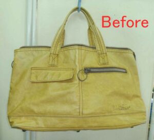 2025-09-05 / 最終更新日時 : 2025-10-26 knishikawa こんな補修も 本革ビジネスバッグの内袋交換 ビジネスバッグの修理をご依頼いただきました。長く使われているのが判る本革バッグでした。 最初に修理(リペア)したい箇所をお聞きすると、底面の革が切れて穴が開いている箇所でした。かなり大きな穴と切れでしたので、こちらは内側から修理(リペア)する必要があります。 もう一つ、お客様のご希望は内袋の交換でした。素材はデニム生地のようです。 内袋を引き出してみると、大きな穴が開いており、こちらは交換するしかない状態でした。内袋を交換するという事は、底面の革の穴開きは施工しやすいという事です。 内袋にはファスナーで開閉するポケットと革で作られた小さなポケットの2つのポケットがありました。「革のポケットだけは新しい物に取り付けて欲しい。」というご要望でした。ファスナーポケットは、無くなっても良いということで修理(リペア)方針が決まりました。 しかしながら、もう一点大きな傷みがありました。ショルダーベルト下の根本です。こちらの施工方法は弊社にお任せいただくことになりました。 まずは内袋の取り出しです。こちらの袋をさらに分解して一枚の布にした後に採寸して、新しい布を縫製します。そのため修理(リペア)というのは、すでに決まった寸法にカットする量産と違って時間は倍掛かるのです。 2つのポケットを裏側から確認します。ファスナーポケットの方は傷みも無く、そのまま新しい布に移植できそうです。その下に革ポケットを縫製している糸も確認できました。 寸法を確認して2つのポケットを新しい布に移植して取り付けました。ファスナーもオリジナルの物をそのまま使っています。内袋に使った布は帆布を使用しました。最初はデニム生地で探していたのですが、あまり良い物がありませんでしたので、帆布を採用することにしました。 内袋をバッグに縫製し直して内側を撮影したものです。当然穴は開いていません。縫製方法はオリジナルと同じなので、縫い目はオリジナルと同じです。 こちらはショルダーベルト下の根本をピックアップ撮影したものですが、こちらはほとんど傷みの無かった側です。そのため、縫製はオリジナルの革の糸穴をキレイにトレースしているのがお判りいただけます。 横から撮影すると、ショルダーベルト下の根本には舌のような革があるのがご覧いただけます。 しかし、反対側の傷んでいたショルダーベルト下の根本には舌のような革はありません。分解して判ったことですが、こちらは舌のような革は切れてしまっていたようです。ベルト根本の革に傷みはありませんでしたが、オリジナルはショルダーベルト下の根本は縫製のみで止められていました。 しかし、縫製だけでは今後も長くお使いいただくには大変不安でしたので、大型の両面カシメで根本革を強化することにしました。ただ、オリジナルからの違和感を極力無くすために、カシメ金具は吊り金具と同色の艶消しゴールドを使用することにしました。同様に傷みの無い方にも同じ処理をして強化しているのは上部の画像からお判りいただけると思います。 底面の穴と革切れはこのようになりました。少し筋が残っていますがこの程度はご容赦いただいています。内側から施工していますので、再度穴が開くことは無いと思います。 お客様にお渡しする時に、一番最初にご覧になったのは底面の穴と革切れの状態でした。ご満足いただけたようで、次は内側をじっくり確認されていました。しかし、苦労したショルダーベルト下の根本は気にされていなかったため、弊社から両面カシメの追加加工をお伝えしました。両面カシメの色を合わせてあったので、特に違和感は感じられなかったようで喜んでお持ち帰りいただきました。おそらく、お客様にとって大変思い入れのあるビジネスバッグなのだと思います。今後も長くお使いいただけることを祈念しています。