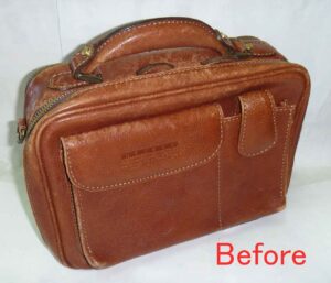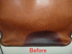2025-07-05 / 最終更新日時 : 2025-09-29 knishikawa こんな補修も 財布の引手補修 お持ちいただいた財布です。写真なので大きさが判りませんが、小銭用の財布で、本体には傷みはありませんでした。 お持ちいただいた理由はスライダーに付いている「引手」が切れてしまったことです。 ピックアップ撮影すると引手の状態がお判りいただけます。革を鏡のように引手の形にカットして金具(Dカン)に差し込んで二つ折りにした後、カットした形に縫製して二枚になる端面(コパ部)はコパ塗料で処理されています。 ちなみにDカンは、元々こちらの画像のように直線部分が引手側になっているのが正しい方向です。 切れた引手だけをピックアップ撮影しました。革は一枚革で、内側には布などの補強はされていませんでした。 引手の厚さを確認すると切れた部分(左側)はそれほど厚くない革です。実測すると0.7mm程度でした。 施工後のピックアップ画像です。オリジナルの革を表面に使用して、内側に合成皮革を接着し強度を上げ、それをDカンに通して、オリジナルと同じ縫製を行って、コパ塗料で周囲を仕上げています。コパ塗料を周囲に塗装している理由はオリジナルと同じ仕上がりにする以外に内側に接着した合成皮革の側面の色を隠す役目もあります。 切れたオリジナルの革の縫製は糸を抜いた穴に沿って手縫製して仕上げています。ここまで手作業を重視している店舗は少ないと自負しています。 なぜオリジナルの革を使うかといううと、財布本体との親和性が保たれるからです。安く施工する場合は下記の方法がありますので、ご発注時にご選択いただければどの方法も施工しています。①適当な革をオリジナルと同じような形にカットしてDカンに入れて接着剤で接着②接着だけでは剥がれが心配な方は接着した革の中央に3目~4目の縫製追加③さらに強度を上げるには革の裏に合成皮革を貼る事も出来ます①~③になると当然施工費用は高くなります。その点はお客様とのお話し合いで決めていますので、ご安心ください。 今回、お客様はオリジナルの引手を使うことで「違和感無く強度を上げる方法」をご選択いただきました。お持ち帰りになるときも気に入っていただけたようでした。