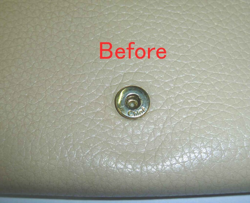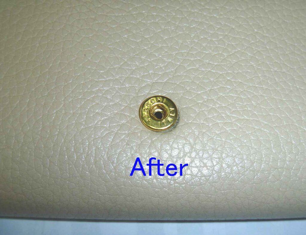 2025-10-16 / 最終更新日時 : 2025-11-06 knishikawa ブランド財布 Chloe長財布のバネホック交換 クロエの長財布をお持ちいただきました。 色やコパの傷みもありましたが、お客様のご要望は違いました。 バネホックが傷んで「カチッ。」と閉まらなくなっている点でした。 バネホックをピックアップ撮影しました。本来はバネとして2本の線バネがあるはずですが、1本しかバネがありません。 バネホックの裏を確認すると、金具の裏は見えていませんでした。金具の裏が見えている場合は施工が簡単なのですが、オリジナルと同じようにするには施工時間が多くなります。 まずはバネホックの出ている部分をカットします。しかし、内側に残っている金具を取り除かないと新しいバネホックが取り付けられません。 内側から、残っていた金具を取り除きました。小さな穴から内側に残っている金具を取り除くには少し時間が必要ですが、キチッと取り除いておかないと、金具のバリで革が傷んでしまいます。 お客様とのお話し合いで「金具の裏は見えても良い。」という事でしたので、内側に金具の裏が見える施工をしています。もし、オリジナルと同じように裏が見えない施工の場合は、糸をカットして再縫製を行う施工時間が増えますので、費用は高くなります。こちらはコストダウンのための方法です。 施工を完了して、新しいバネホックをピックアップ撮影しました。バネホックには「ITALY」の文字が刻印されています。こちらはメーカーさんから部品購入は出来ないのでイタリアのバネホックメーカーの物になります。日本で数多く流通しているバネホックは少し大きく、キチッと止めるためにはこちらの「ITALY」ホックがオススメです。弊社では日本製の物と2種類から選択しています。もし、いずれのバネホックも合わない場合は両方とも交換する必要がありますので、費用が高くなります。お客様も「カチッ。」と止まるようになるのを確認いただき、喜んでお持ち帰りいただきました。